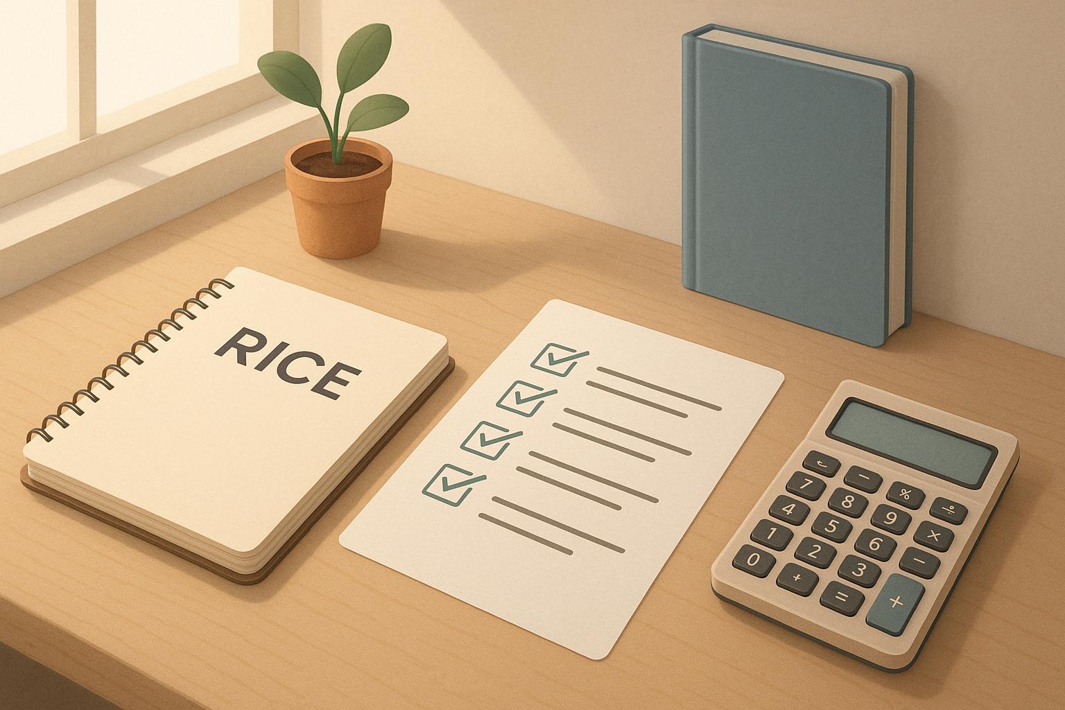 Use RICE to rank tasks objectively, reduce overwhelm, and make better use of your time. To start, list your tasks, assign scores for each factor, calculate their RICE values, and sort them by priority. Regularly review and adjust as needed.